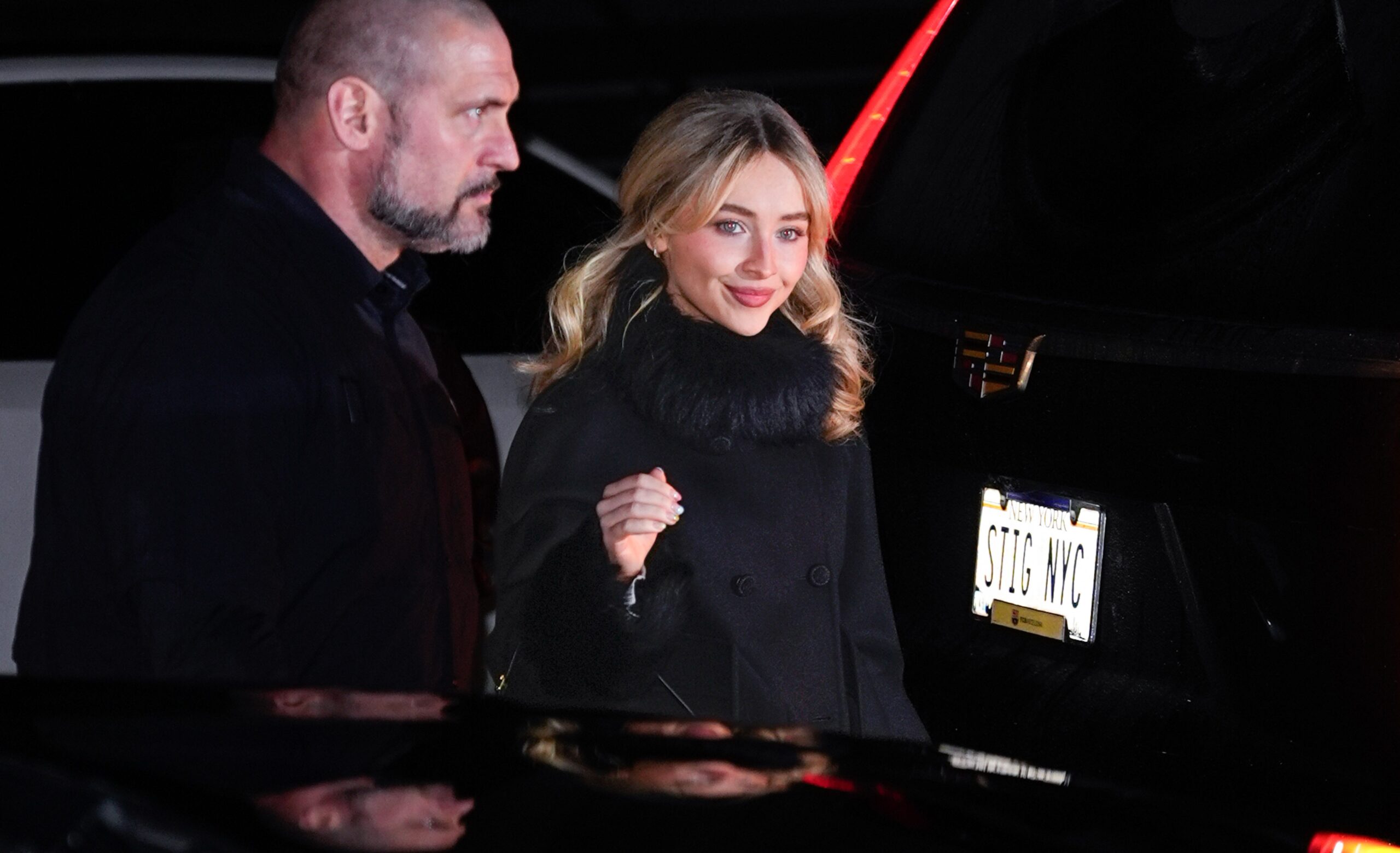 After her performance, Carpenter celebrated in style at an after-party in New York City. She donned a striking double-breasted coat by Valentino Garavani, crafted from black wool and featuring an ankle-length silhouette complemented by fur cuffs and a matching neckline. The luxurious design perfectly balanced comfort and elegance.