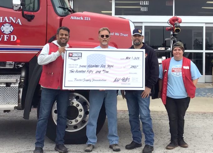 Tractor Supply celebrated National Hometown Heroes Day on November 1 by donating a total of over $1 million across its more than 2,300 stores nationwide. Each store contributed $500 to local organizations, benefiting police, fire departments, and veteran services. In Longview, Texas, the donation specifically supported the Diana Volunteer Fire Department, highlighting the company’s commitment to local communities.